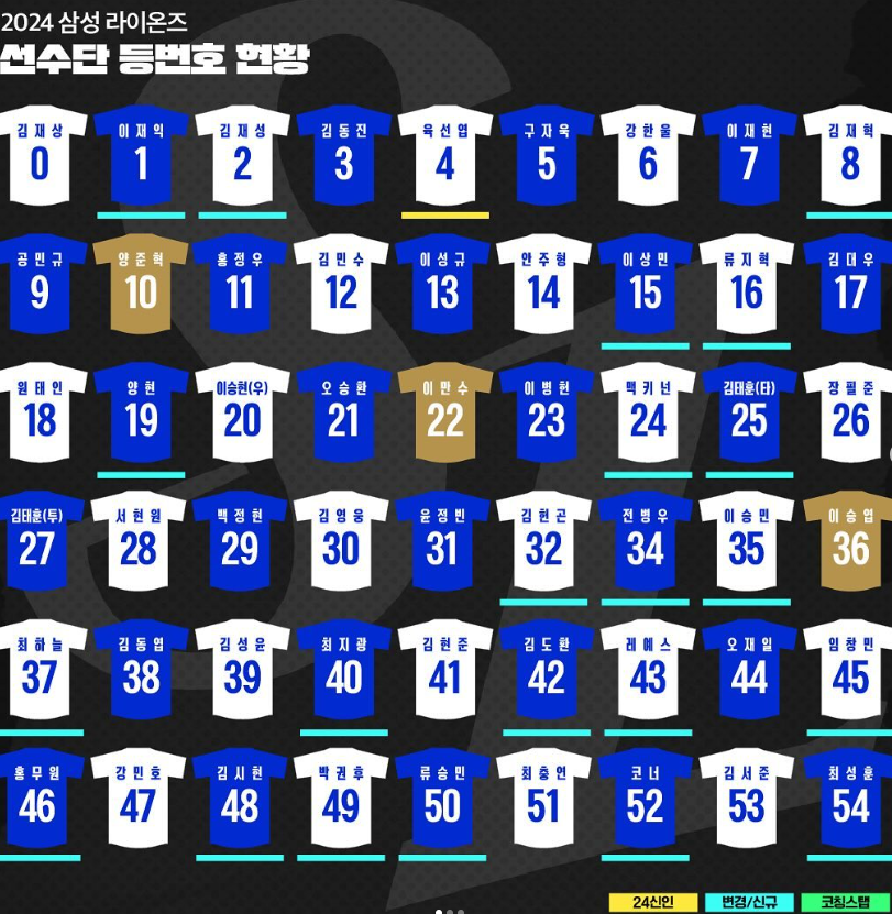 2024 삼성 라이온즈 등번호