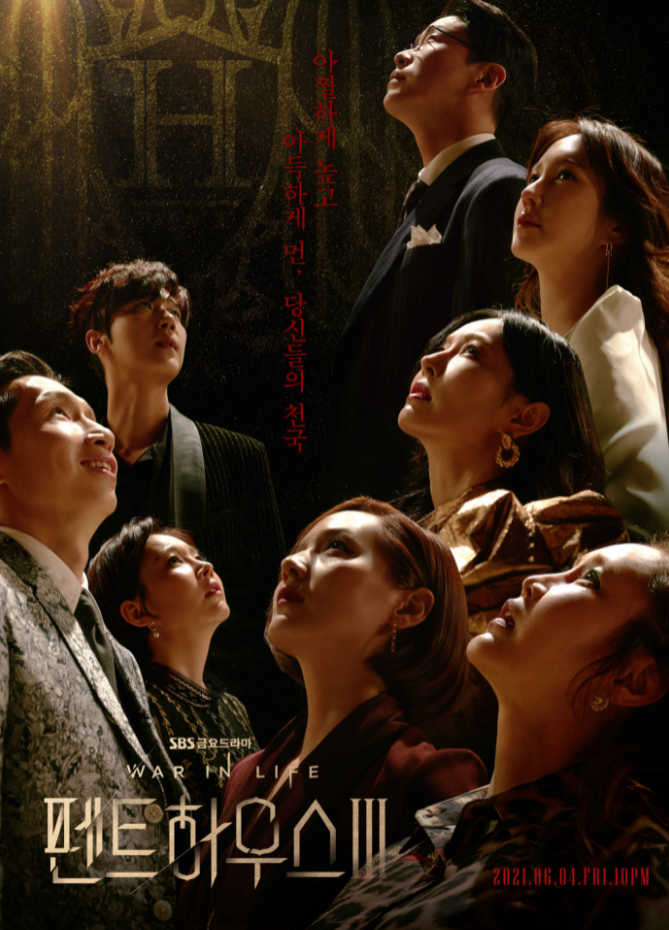 다음으로는 SBS 금토 드라마 <펜트하우스> 시리즈가 2021년 최고 화제작으로 떠오르며 많은 주목을 받았는데 2021년 1월 5일 종영한 시리즈 1의 최고 시청률은 28.8%, <펜트하우스 2> 29.2%, <펜트하우스 3> 19.5%의 최고 시청률을 기록했습니다.