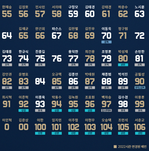 <NC 다이노스> 선수 등번호
